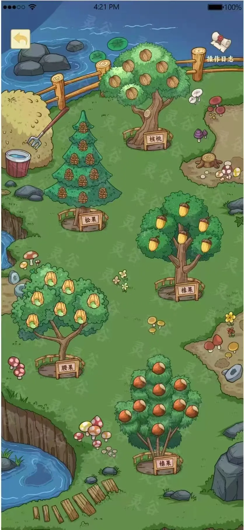 坚果森林:消耗肥料可开通/升级坚果树,5级树每天稳定产果,果实既能直接兑换道具,还能投入加工厂赚果仁。