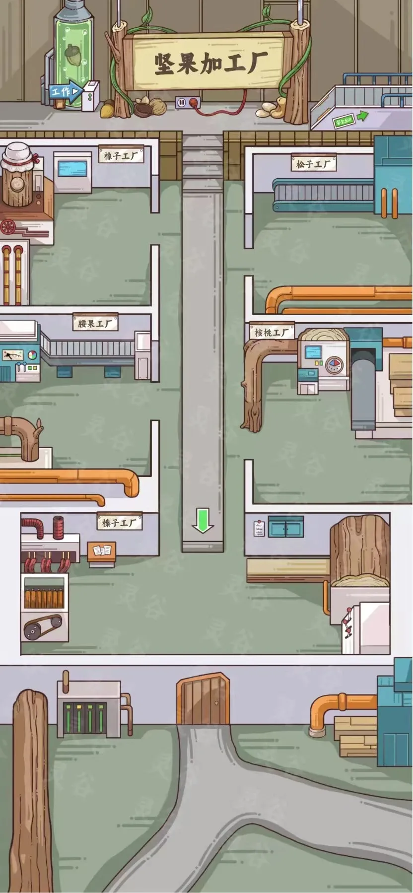 穿梭冒险:玩家能够在各式各样的科技工厂间穿梭,对各类坚果进行加工处理,还能在小径上悠闲漫步。