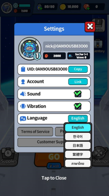 2、然后点击language里的English切换语言,选择繁体字就可以将游戏设置成中文版。