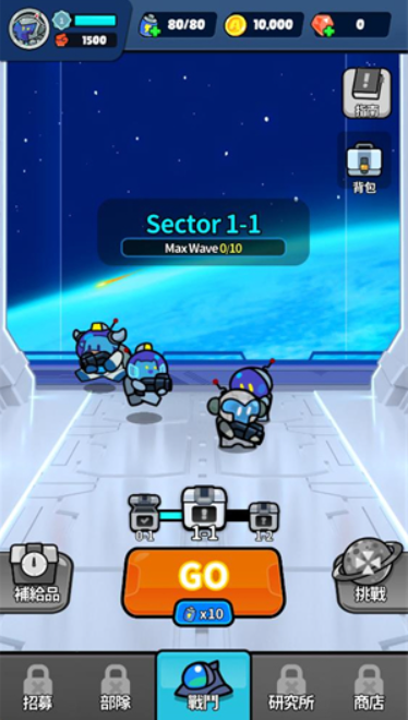 1、进入游戏后,点击主界面的GO按钮开始闯关。