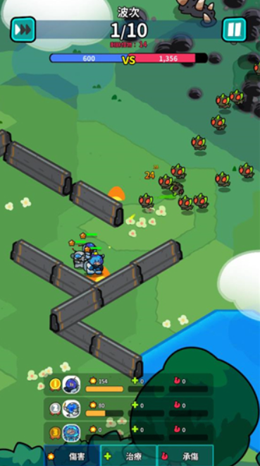 3.运用鲜明活泼的Q版美术风格,打造出生动有趣的战场呈现效果,其中既涵盖大规模的首领对战,也包含无尽波次的挑战模式,让游戏在具备休闲体验的同时,也拥有深度的策略玩法。