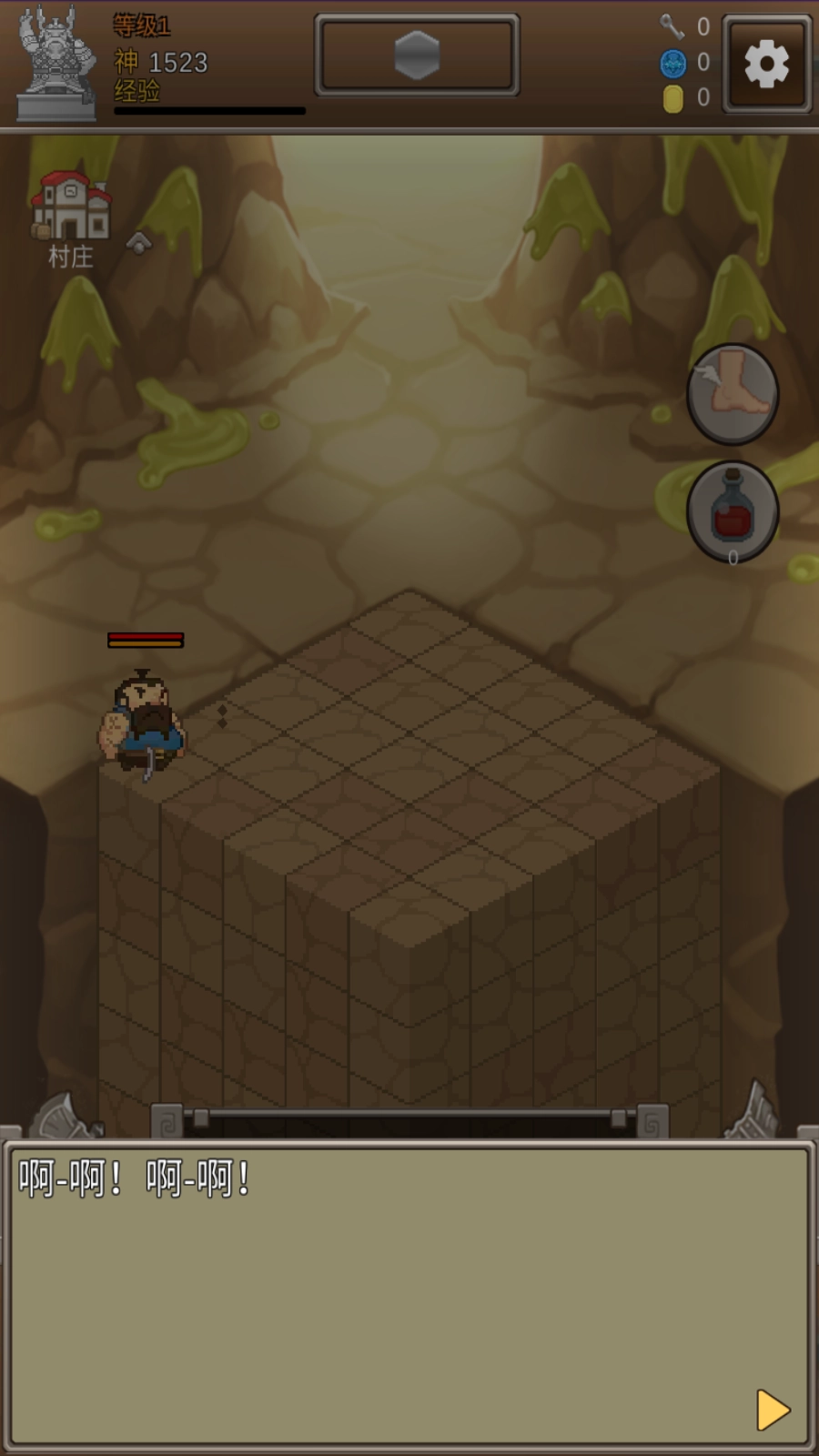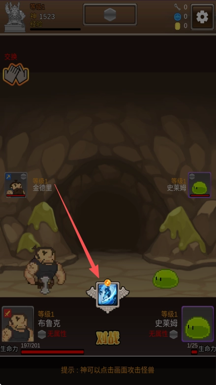 战斗时,点击屏幕就能召唤神来协助攻击怪物;击败怪物后收集掉落的物品,继续探索洞穴以完成挖宝任务;提升等级还能解锁更多队员与功能。