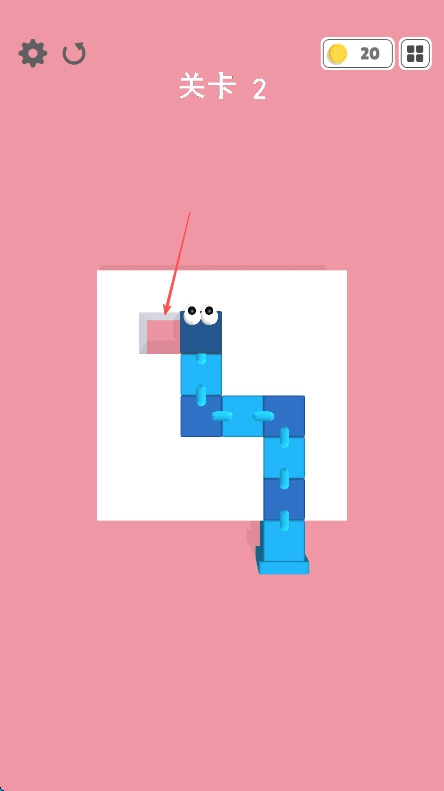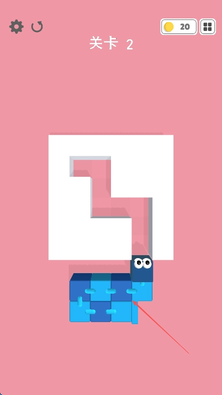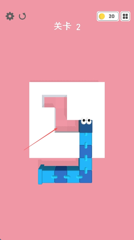 进入第二关后,留意右上角显示的20枚金币数量,同时仔细观察粉色背景里白色区域构成的迷宫轮廓。