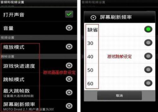 4、除了屏幕可以调转之外GameBoid还可以对屏幕的跳帧和刷新率进行调整。