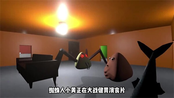 2、第二天再次醒来时,我看到蜘蛛人小黄正和健胃消食片激烈对战,消食片似乎被砍中了一刀。幸好玩家帮忙给消食片包扎了伤口,伤愈后的消食片实力大增,只用一招就把蜘蛛怪解决了。