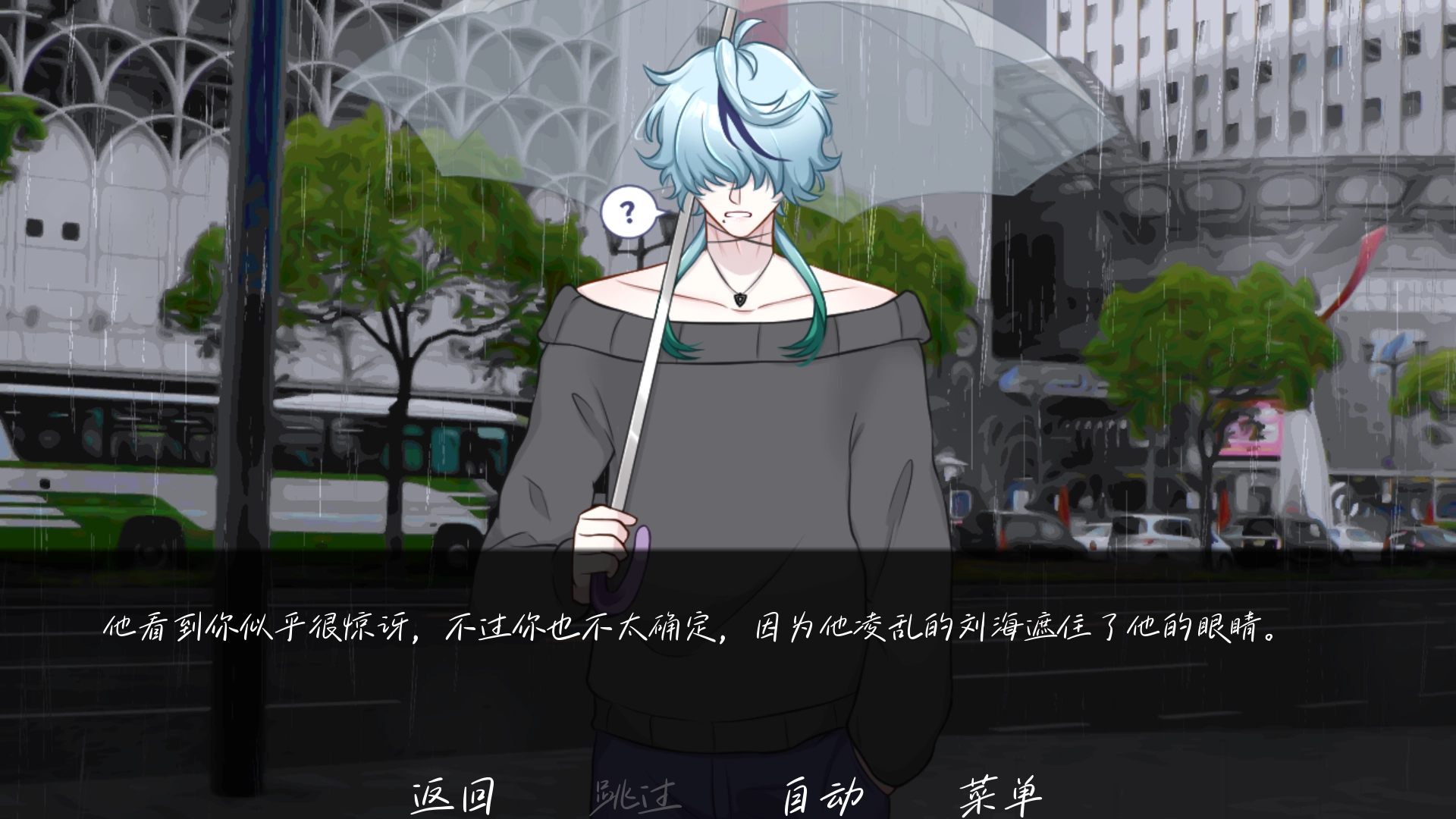 雨中的执念是一款视觉小说互动游戏,背景设立在都市中,玩家扮演一位咖啡馆员工,因一场大雨邂逅了一位陌生男子并接受了他的帮助,在同行的过程中逐渐揭露彼此隐藏的秘密。玩家主要通过点击推进剧情,在决策点处做出自己的选择,每个对话选择都会影响角色关系发展与故事走向。游戏共设计了三个常规结局以及一个隐藏结局,玩家在达成全部常规结局后即可解锁隐藏结局。游戏细腻的手绘画面,搭配上真实的雨声音效,让玩家更沉浸在这个故事中!