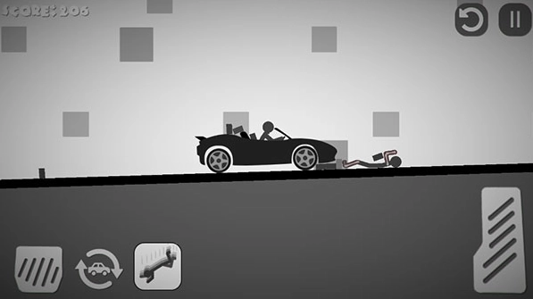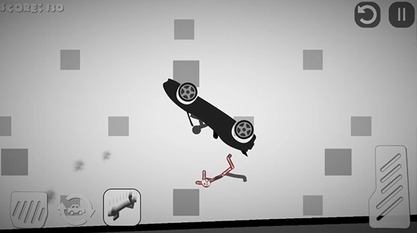 2、这一关的挑战内容是驾驶汽车撞击火柴人。左下角的按钮是刹车,右下角的按钮是油门。