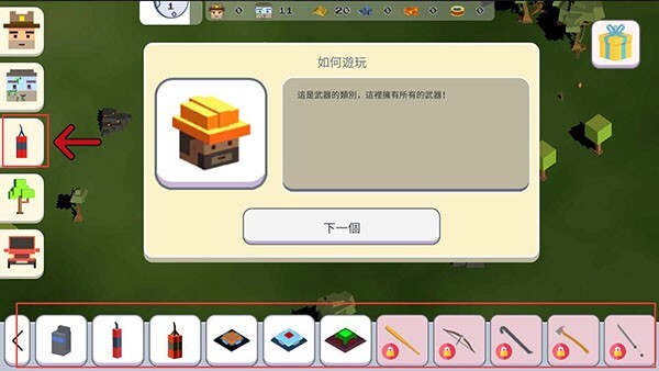 7、这是信息按钮,可以帮助你制造更多的武器;