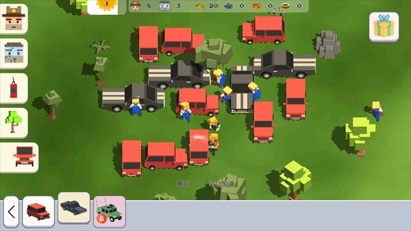 3、选好车辆后,其下方会出现一行小字,显示当前车辆的属性信息。例如,小编所选的赛车具备加速功能,此时点击图中任意位置,就能将车辆布局在地图上了!