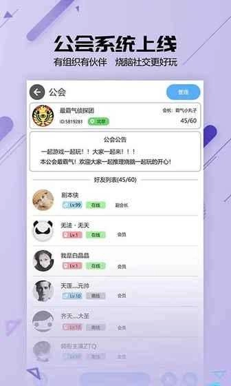 剧本内容丰富多样,各类题材随心挑选!快速匹配功能,让你无论何时何地都能即刻开启游戏!还能邀请好友组队,尽享欢乐时光!