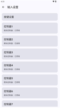 2、点击“输入设置”选项,该界面可对模拟器的操作进行配置。接着点击其中的“控制器1”,选择对应的模拟控制器,即可激活手柄并进行按键配置。