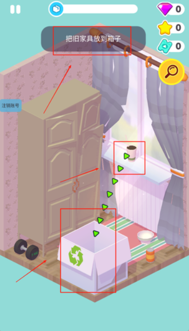 2、玩家需对物件进行收纳操作,界面顶部会展示当前的资金数额与任务进展情况