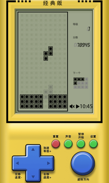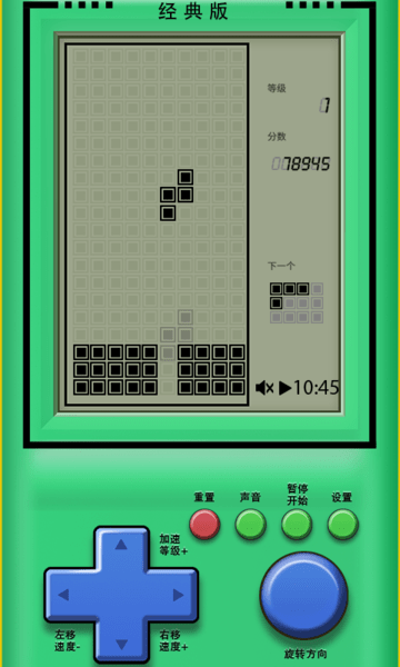 这是一款经典的益智游戏,玩法简单却充满挑战。玩家通过旋转、移动和放置各种形状的方块,将它们拼接成完整的水平线以消除得分。游戏节奏快速刺激,能让玩家尽情享受无尽的乐趣。经典的像素风格和简洁的界面设计十分吸睛,适合各个年龄段的玩家。如果你喜欢益智游戏或是怀旧经典,不妨来体验一下这款欢乐方块拼图游戏。