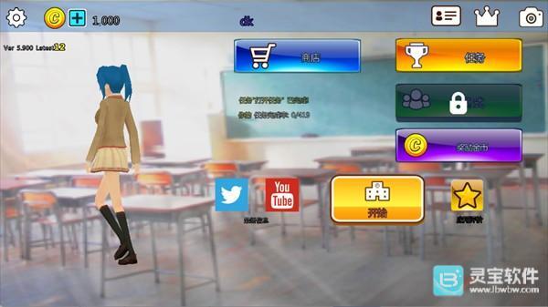 3、进入主界面后,你可以通过【商店】购买各类道具,在【任务】栏查看当前的目标任务,点击【开始】按钮就能进入校园场景。