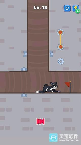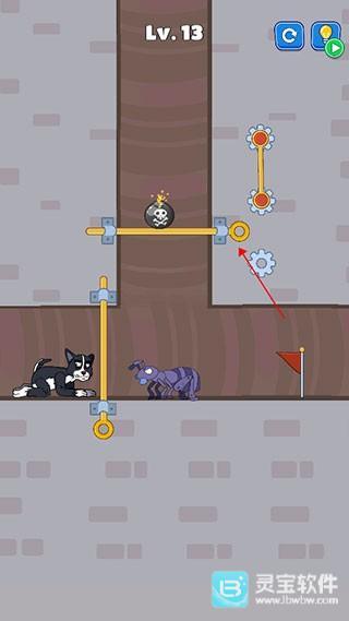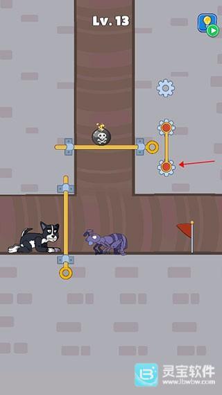 1、随后打开并进入游戏,我们以第13关为例,首先将这个拉杆向上移动