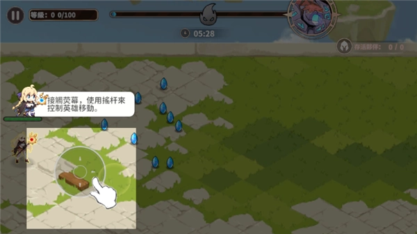2、接触荧幕,使用摇杆来控制英雄移动。