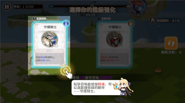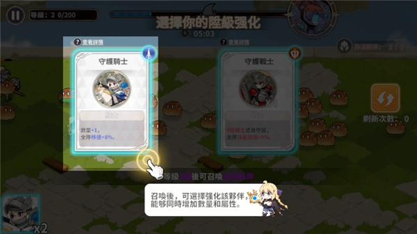 3、点击召唤可以增加一速,可以远距离冲锋的伙伴守护骑士