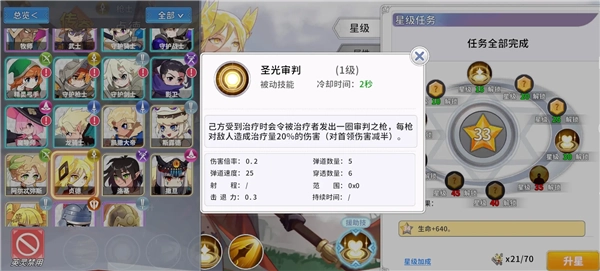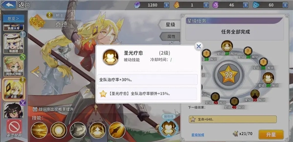 升星能提升全体治疗且贞德技能为打boos主力,所以优先建议升星拉满贞德。
