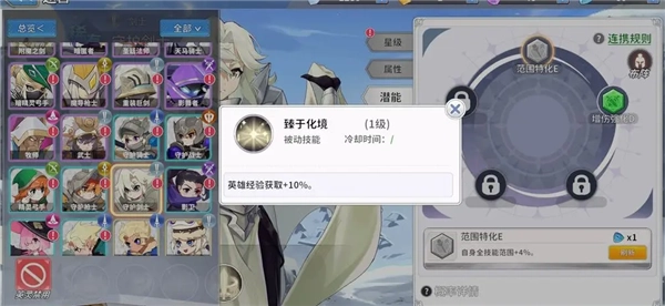 经验强化唯一真神。前期能苟活就升他!气运里面甚至还有加35%的经验。