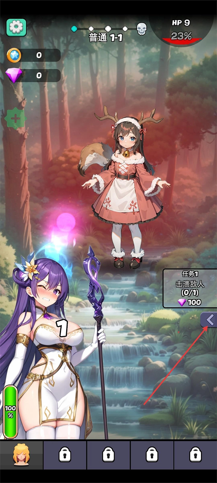 1、游戏启动后,点击界面右侧的小箭头就能展开角色属性强化面板。