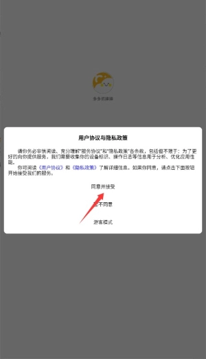 1、首次打开应用时,需要阅读并同意用户服务协议与隐私条款,点击确认按钮后即可进入主界面。
