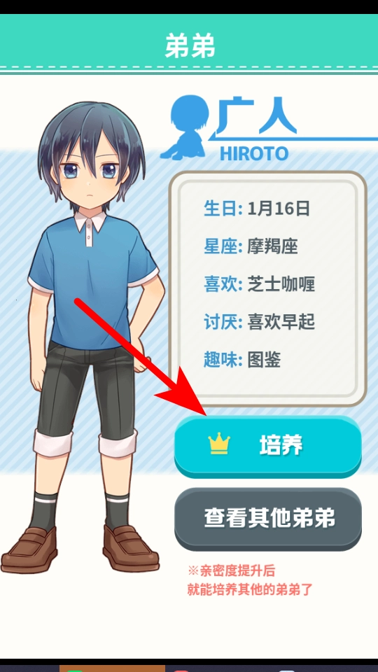 进入弟弟的信息页面后,点击培养按钮,就能更有条理地规划对弟弟的培养方案。