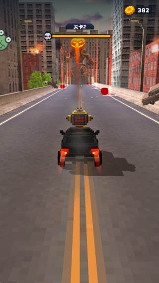 4、每个关卡的BOSS都有独特的造型设定,你可以借助战车强化的力量将它们撞毁。