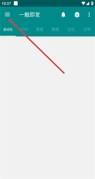 1、打开一触即发后,点击屏幕左上角的三条横线图标,就能展开侧边栏,进而进入系统设置进行相关调整,还可以查看个人信息等内容。