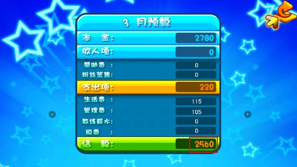 赛后打开3月预算界面进行查看,仔细核对本金与各项收支明细,确认最终结算金额为2560元,并对后续资金使用做出规划,将其用于训练、生活等方面的支出。