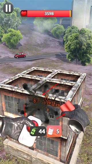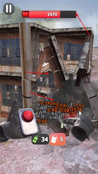 爆破过程中,建筑会逐步垮塌,与此同时能看到相关的数值变动,呈现出爆破的成效与进度,角色的生命值等也会出现对应的变化。