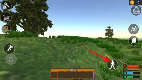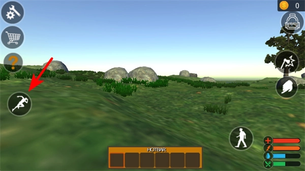 进入场景后,点击移动按钮来操控角色前往资源区域,让角色靠近树木、矿石这类目标,这样就能为之后使用工具采集资源做好准备。