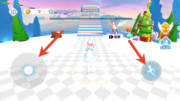 2、进入地图后,你得通过左右两侧的不同按钮,来操控小人开始冲刺。