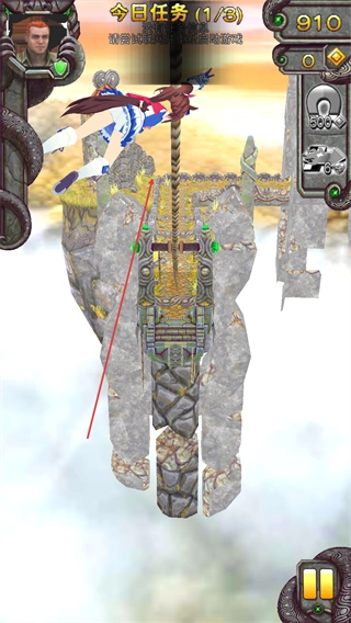 操控角色顺着索道往下滑,收集沿途的金币,这样就能完成今日任务三分之一的进度,进而推进关卡。