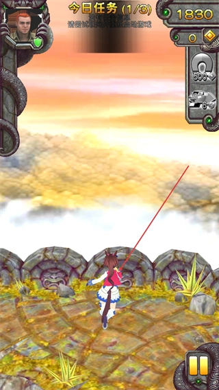 角色落地后继续前行,在场景里收集更多金币,让得分提升到了1830。