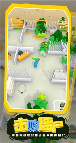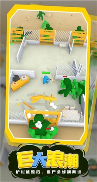 提供多样武器近战、枪械)与防具供搭配,小人角色可升级属性与技能,打造专属战斗小队,应对不同类型僵尸的威胁。