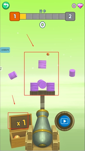 玩家需点击目标来发射大炮,利用炮弹击飞目标物体,当所有目标物体都被击飞后即可完成关卡。