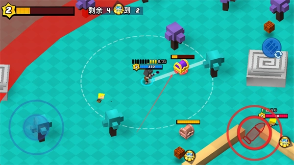攻击紫色宝箱来获取道具,以此提升战力,与此同时要瞄准敌方玩家,向他们发起进攻。