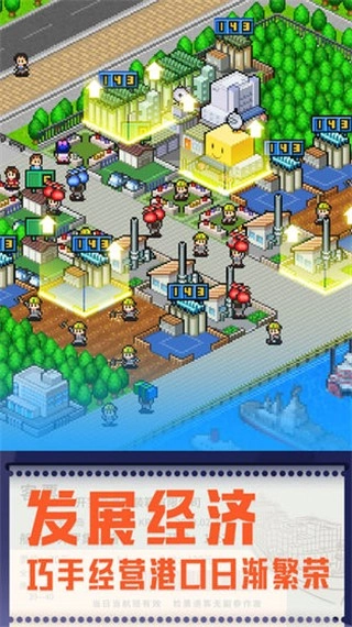 开罗系列标志性的像素卡通风格得以延续,港口的场景、设施与船只等设计简洁又可爱,色彩搭配舒适且协调,既留存了怀旧质感,又能营造出轻松惬意的经营氛围,适合不同年龄段的玩家。