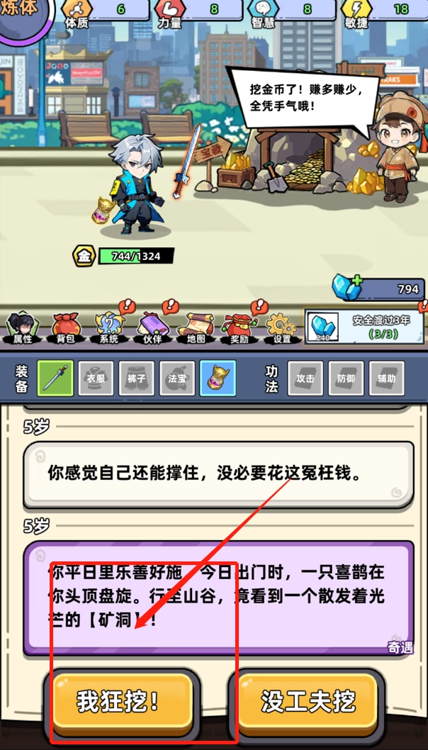 在游戏过程中会遇到下图的画面,请点击我狂挖。
