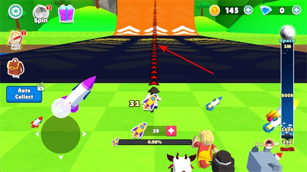 收集场景里的火箭道具,这是提升飞行能力的核心操作,收集过程中要留意道具的分布情况和数量。
