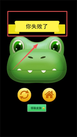 4、要是挑战失败了,你可以点击下方那个金色的循环箭头按钮重新开始,也能点击房子形状的图标回到主页。要是不想重新挑战,还可以直接点击绿色按钮来领取皮肤。