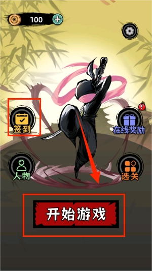 点击开始游戏。左边有签到可以领取奖励。