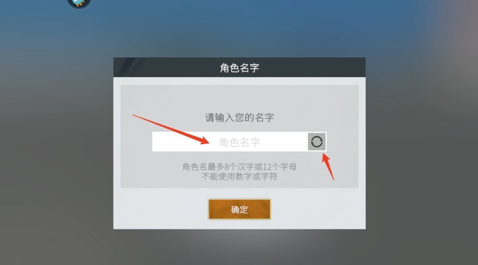 2、新玩家进入游戏后,首先需要为自己取一个名字;要是遇到起名难题,点击右侧的小圆圈即可自动生成名字。