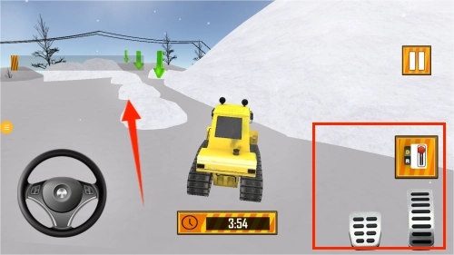 通过操控左侧的换挡装置、油门以及刹车,把道路旁的积雪清理干净。