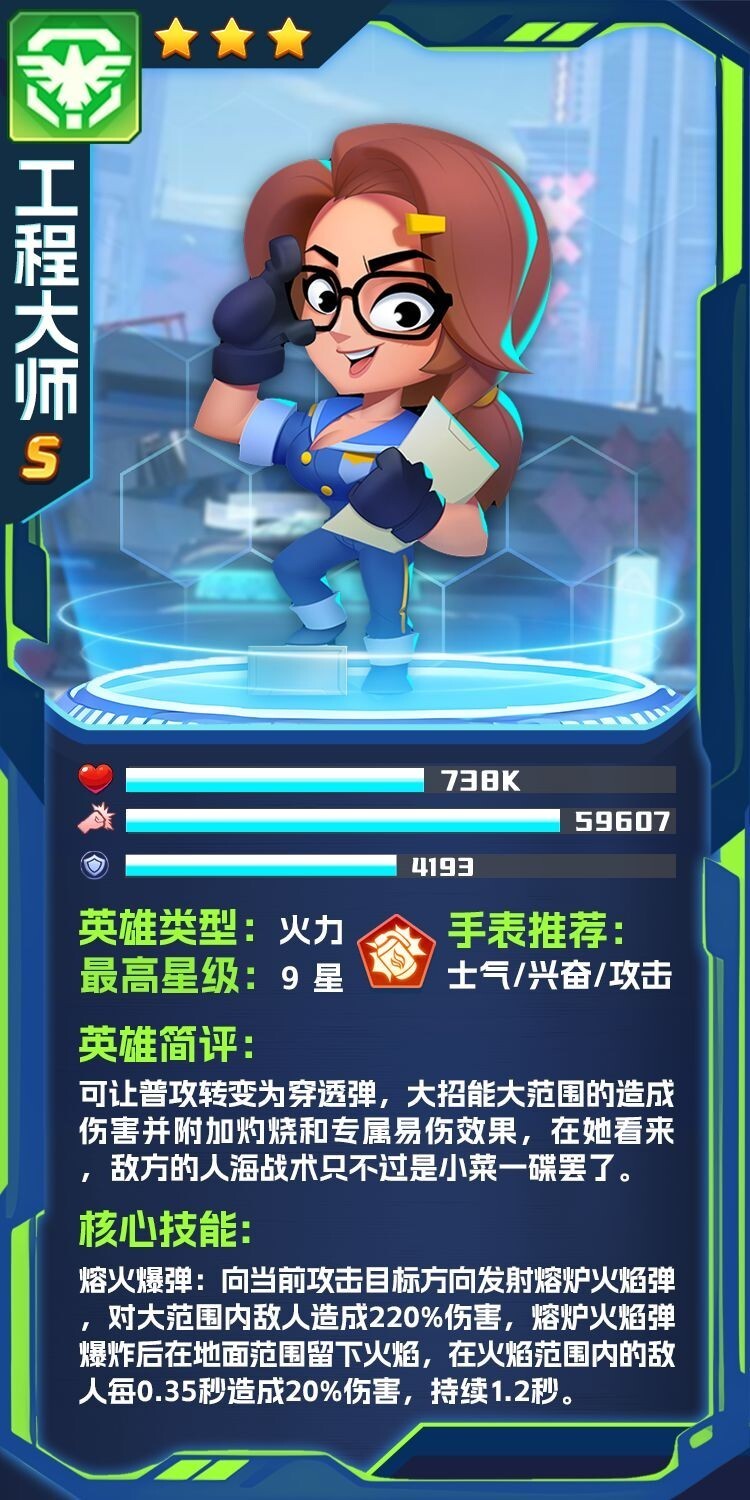 推荐理由:帝国军团的进阶阵容中,智能博士的技能会附带敌方已损失血量的效果,搭配友方英雄的强力输出,能够造成大量伤害。