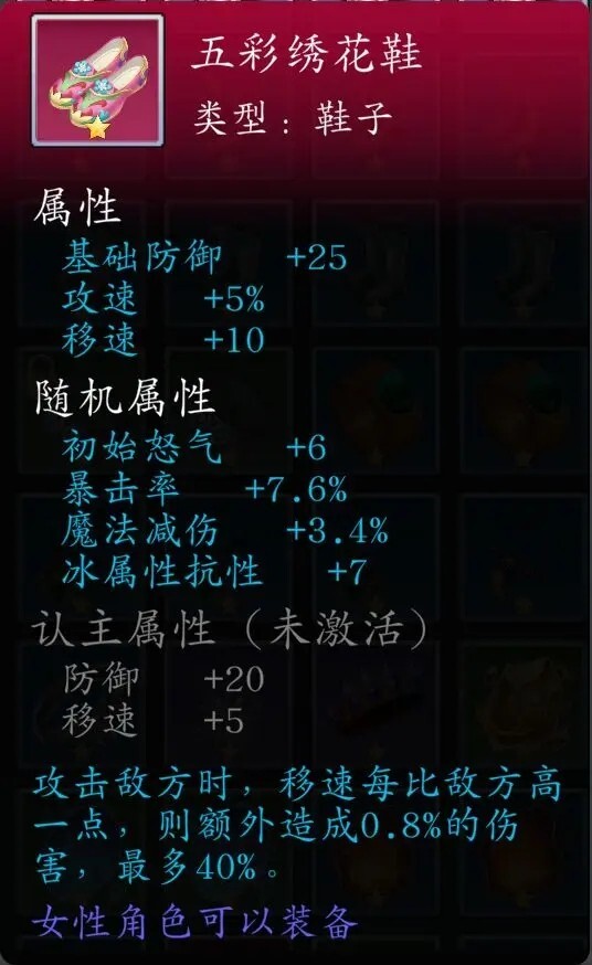 3、当与严世豪和冯雅兰的好感度均达到100以上时,有一定概率触发帮助严世豪送信的任务;完成送信后会触发特殊任务,该特殊任务需与严世豪进行对话,若对话时与严世豪的好感度已超过300,即可获得《五彩绣花鞋》。