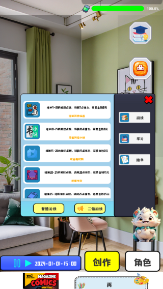 4、可以按照玩家的策略思路来规划学习,要留意上方的电量,每次进行学习都会消耗相应的电量;