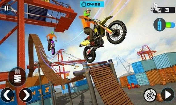 2、借助触摸屏进行操作,玩家能够操控自行车的加速、减速、跳跃与旋转,达成精准的特技展示;