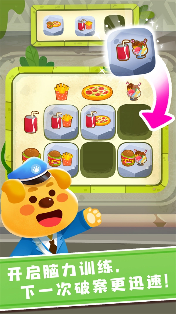 宝宝巴士奇妙探案日记是一款围绕儿童推理打造的互动游戏,孩子们会变身为小警员,跟着啦咘啦哆警长一起开展调查。在追查涂鸦者的过程里,得留意地面的油漆痕迹来规划追踪的路线;到了审讯环节,要依据目击者的描述拼出嫌疑人的面部特征;体能训练环节设置了障碍跑和收集旗子的挑战;脑力锻炼部分则借助宝石与石槽的匹配谜题,来培养逻辑思维能力。整个过程把案件侦破和多种能力的培养很自然地结合在了一起。