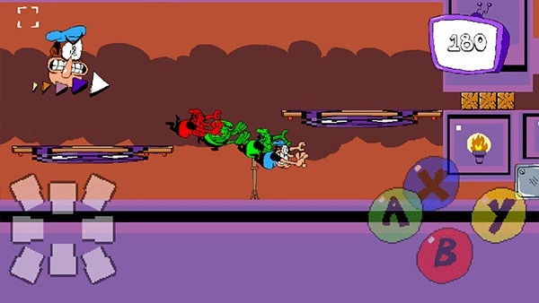 1、玩家通过虚拟按键控制角色移动与攻击,左键控制方向,右侧A键跳跃、X键抓取/投掷敌人、B键发动冲刺。 2、核心玩法要求玩家在高速移动中精准操作:利用冲刺破坏障碍物,抓取敌人作为武器或解谜工具,同时躲避熔岩、陷阱等致命机关。 3、每关设有“狂飙”逃亡阶段,需在塔楼坍塌前按指定路线逃离,极限操作带来强烈刺激感。